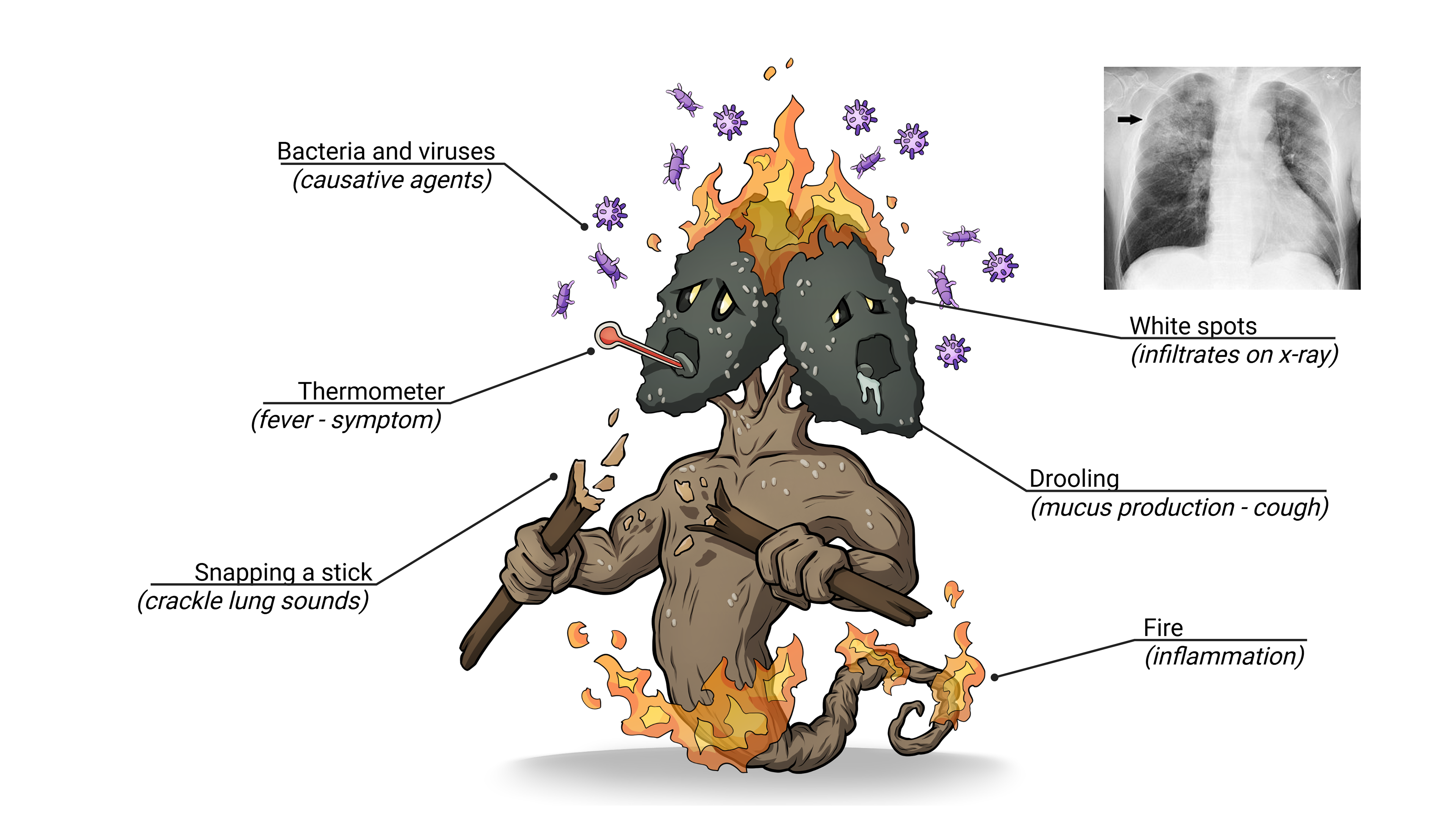 Pneumonia is an infection of the Lungs that causes inflammation and the buildup of fluid or pus in the Alveoli. It can be caused by bacteria, viruses, or fungi and can lead to symptoms like cough, fever, and difficulty breathing.